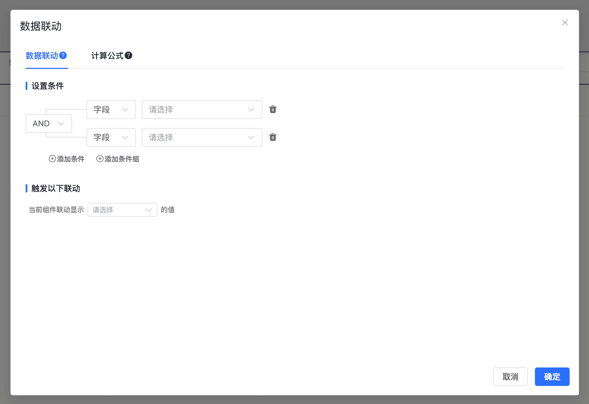 - 来源字段:由哪个字段或数据源触发联动。