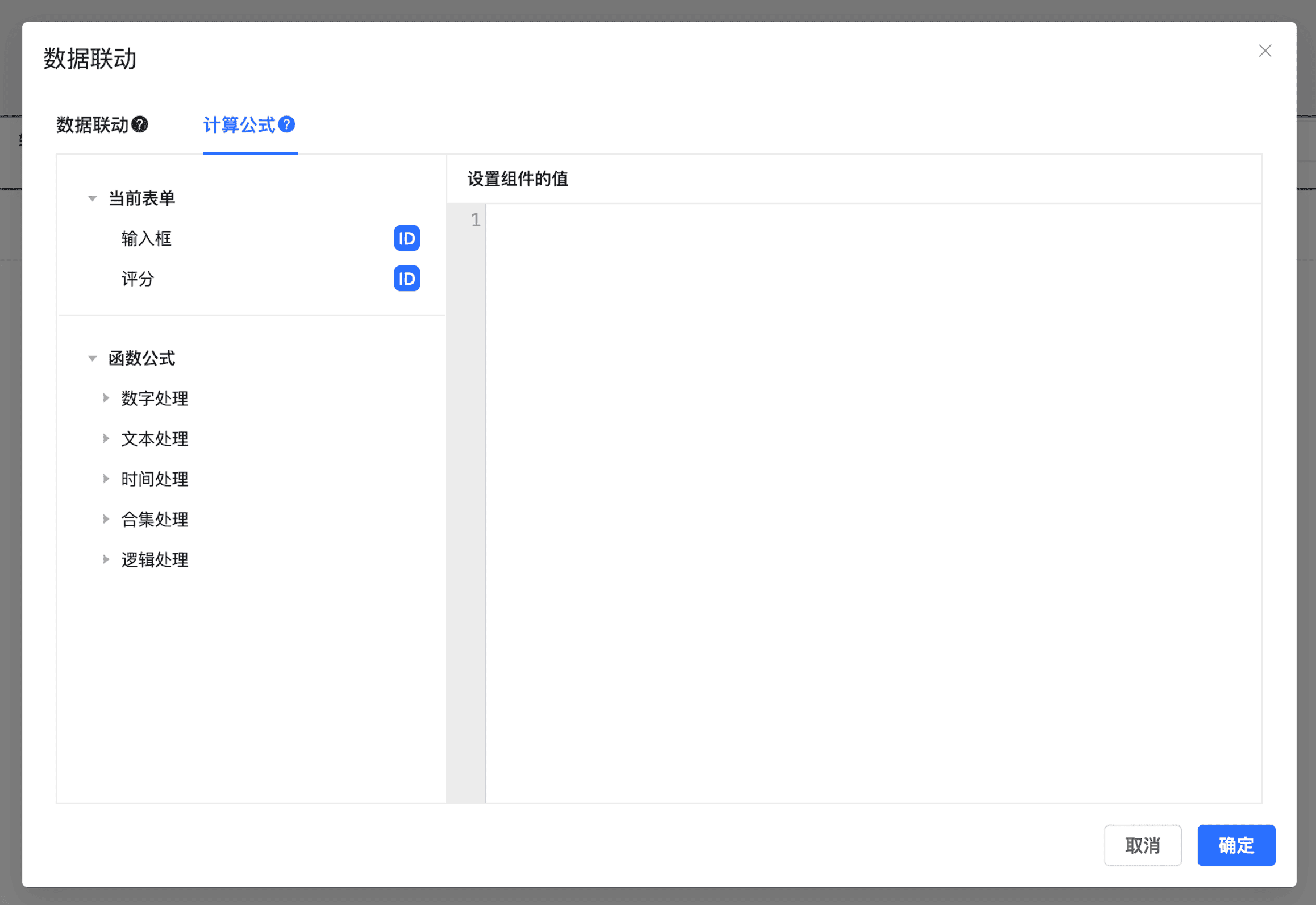 点击数据联动之后,打开数据联动设置弹窗;