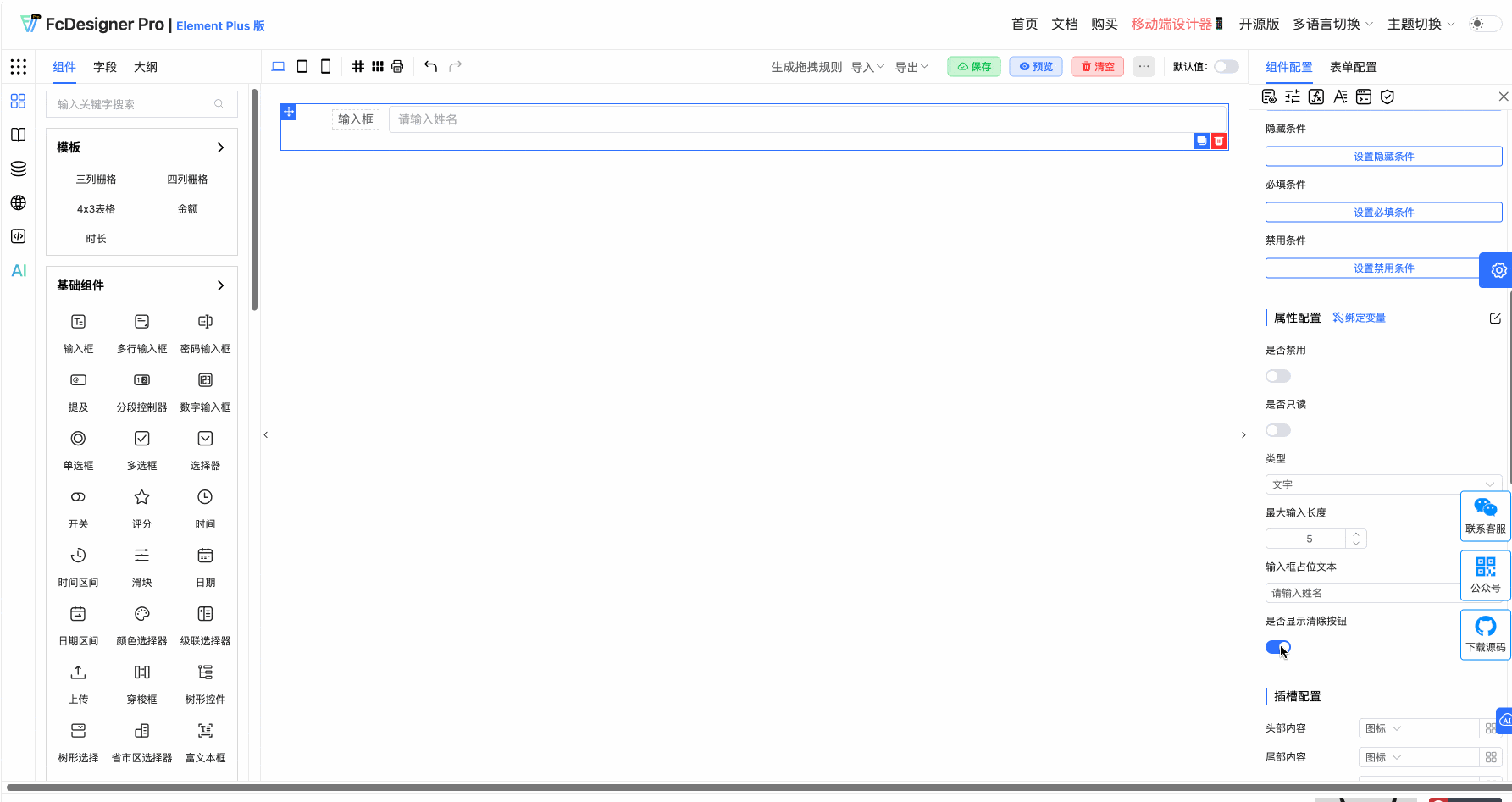 - 空间优化:隐藏清除按钮以减少界面元素,适用于移动端或紧凑布局。若页面同时还要控制禁用、只读或占位引导,也可以继续配合禁用及只读和自定义输入框占位文本使用。