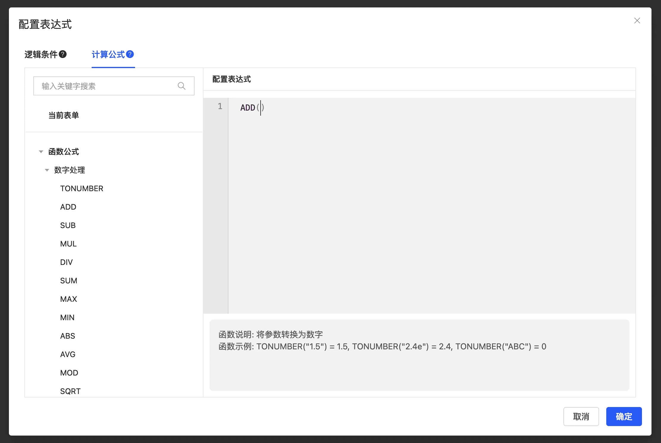 计算公式通过公式和表单数据,动态计算组件的状态和数据值。