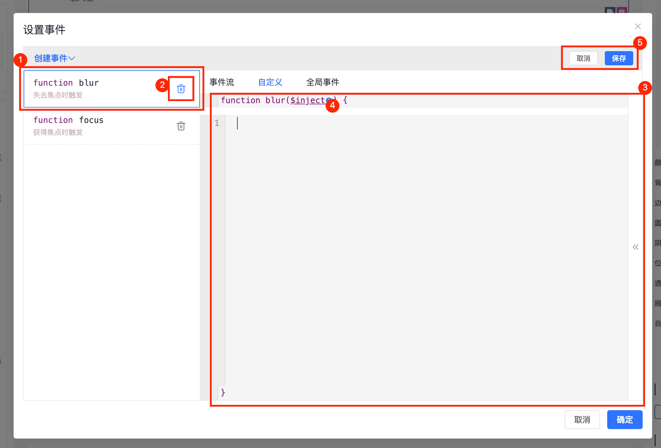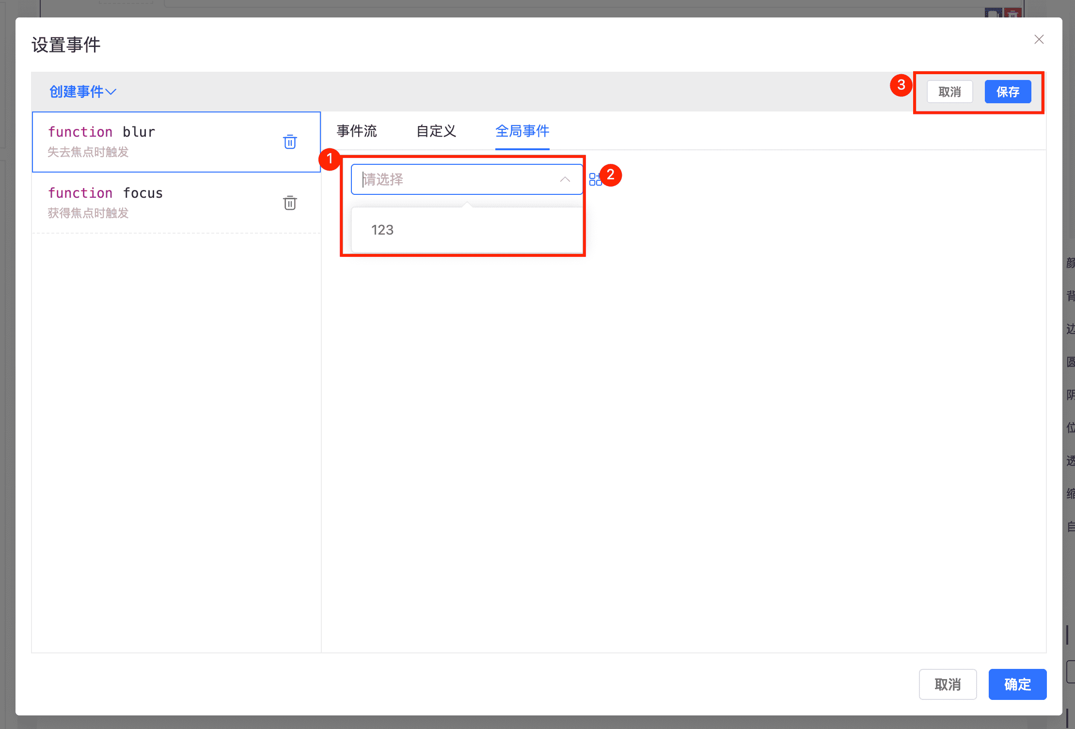 - 从全局数据源中选择自定义的事件函数,支持扩展