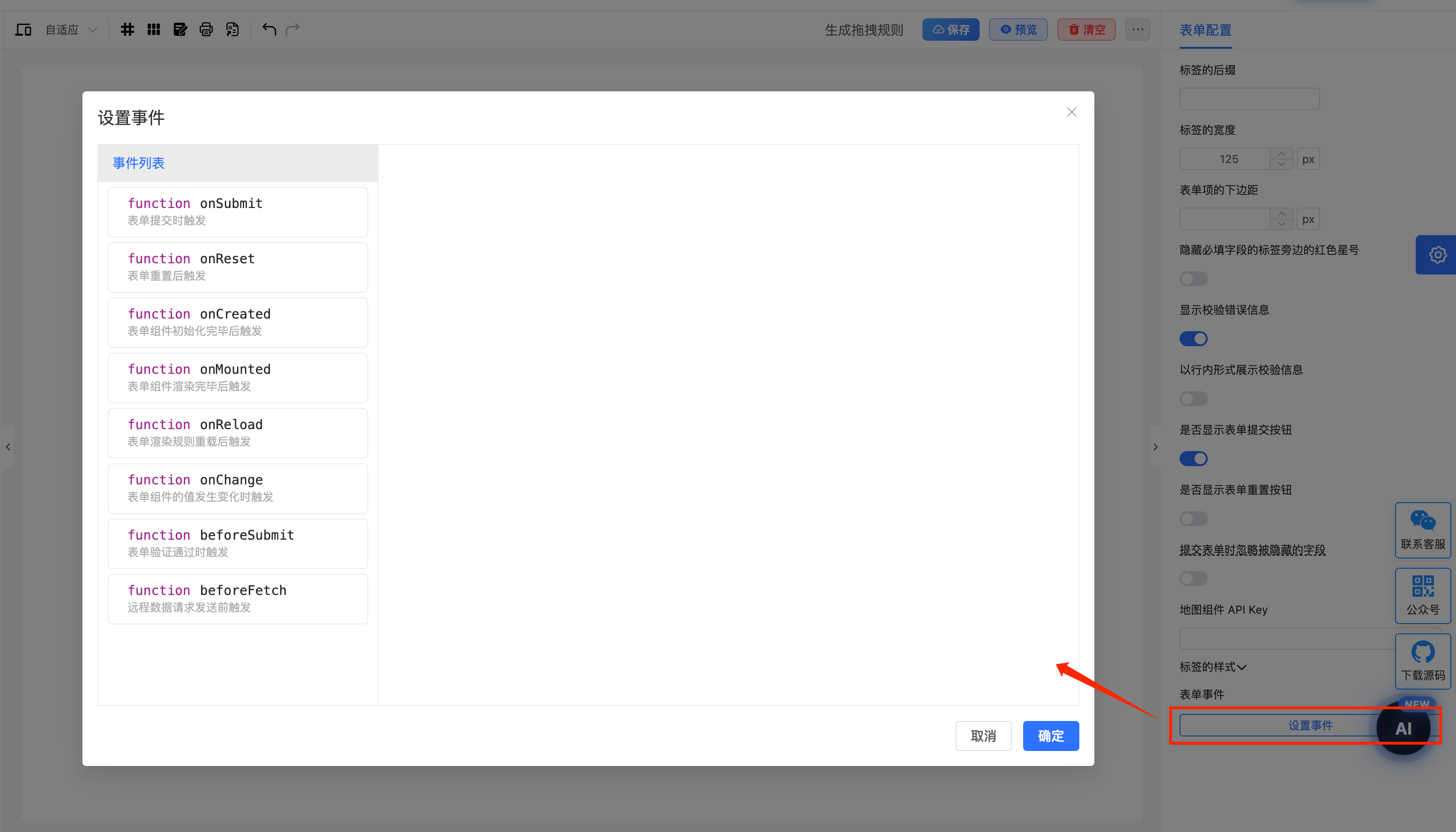 表单事件配置