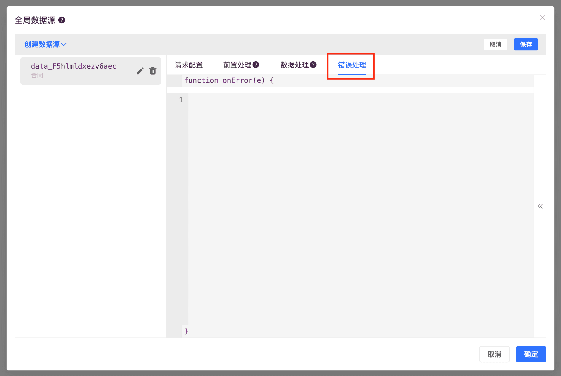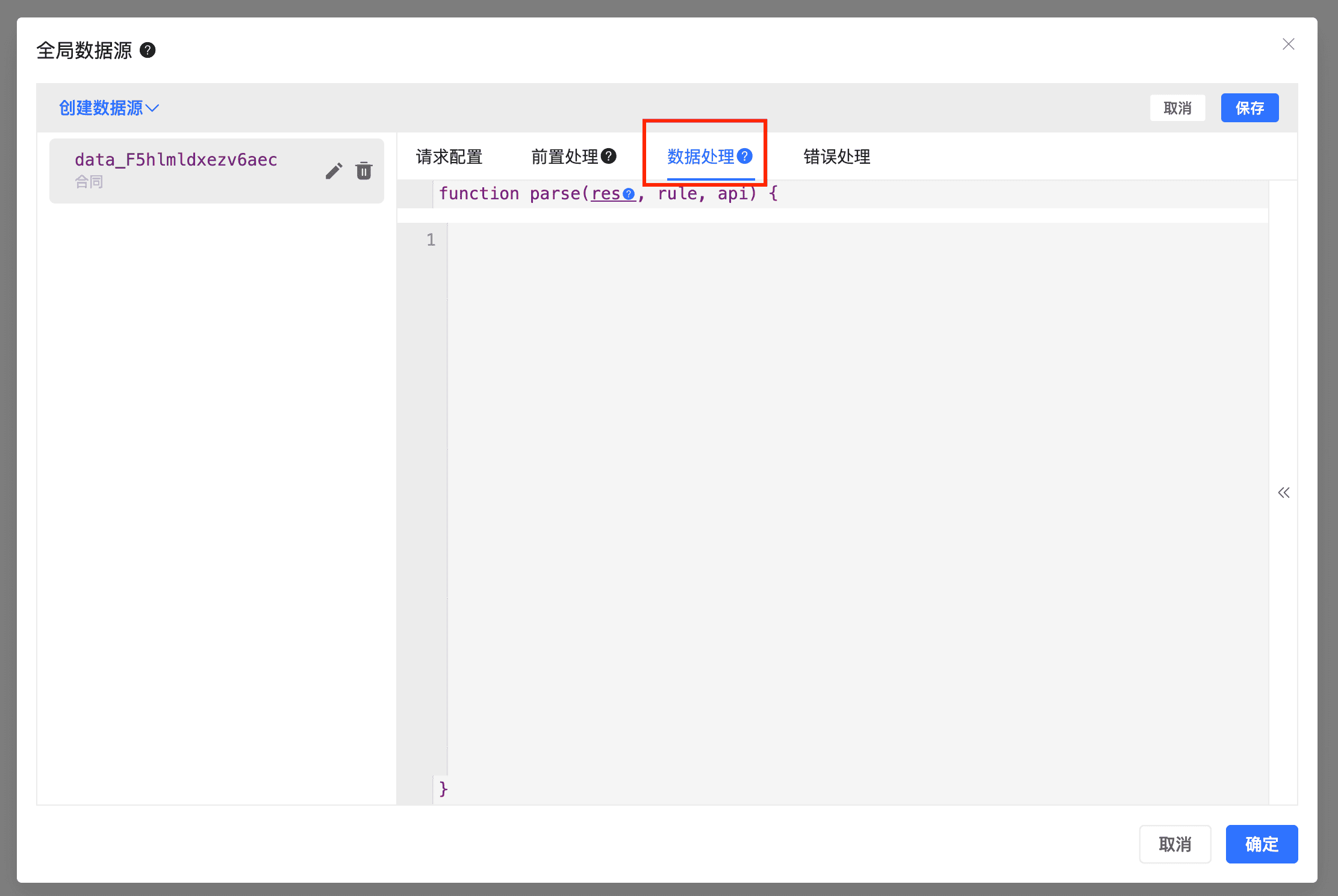 - 管理按钮,快捷打开全局数据源管理界面